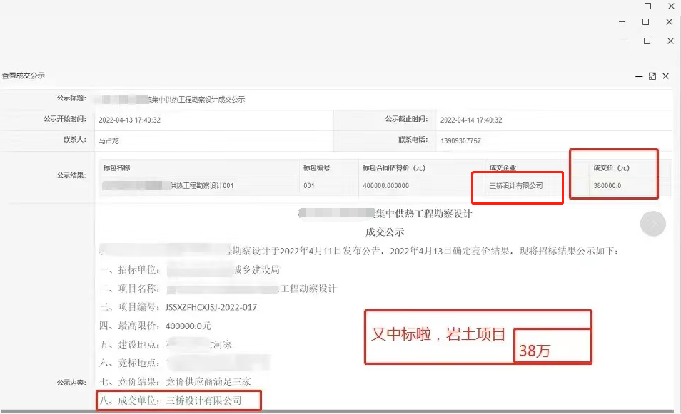 最近传来好消息,三桥设计院甘肃分院大手笔拿 下一某地集中供热项目的勘察设计部分业务,中标金额38万~~~可喜可贺~~为祖国的建设事业添砖加瓦,为人民的幸福生活贡献力量~