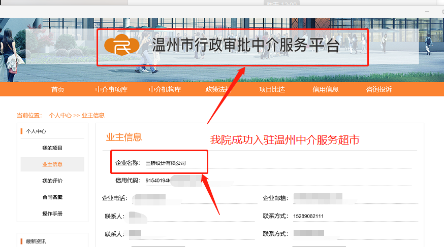 我院为了在全国业务的展开,自上次成功入驻广东省中介超市以后,又着手开展在浙江省温州市的中介超市的入驻。
